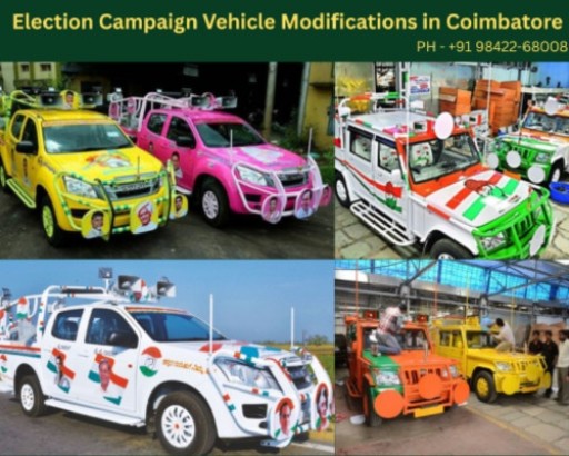 campaign for election Complete Branding and Modification of Vehicles in Coimbatore From JeepClub Coimbatore—Tamil Nadu's reliable expert for high-impact Campaign & Political Vehicle Customization—upgrade your campaign with professional election vehicle modification, branding, LED configurations, PA systems, wraps, interiors, and rally ornamentation. Designed for visibility, durability, mobility, and great voter engagement, our entirely unique campaign vehicles are ideal for ward-level campaigns, Lok Sabha elections, statewide rallies, and Tamil Nadu polls in 2026. Full Campaign Vehicle Modification Services We transform any sort of campaign vehicle as follows: Bolero, Thar, SUV, Pickup, Tempo Traveller, autos, vans, open Jeeps, stage vehicles, LED vehicles Under one roof, our team manages design,
